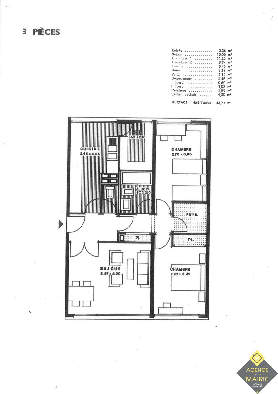 Appartement 3 pièce(s) 2 chambre(s) 62.96 m²