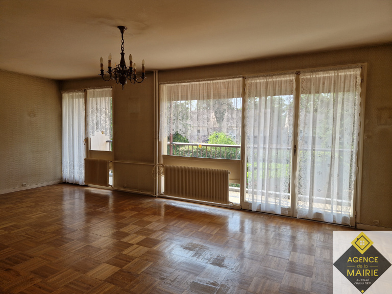 F3 de 86.39 m², lumineux, fonctionnel et traversant. Il est situé dans une résidence calme et sécurisée, à 10 min à pied du centre ville et des commerces.