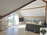 Au premier étage une belle entrée avec placard, une grande pièce à vivre ouverte sur une cuisine aménagée, chambre, salle d'eau avec WC.