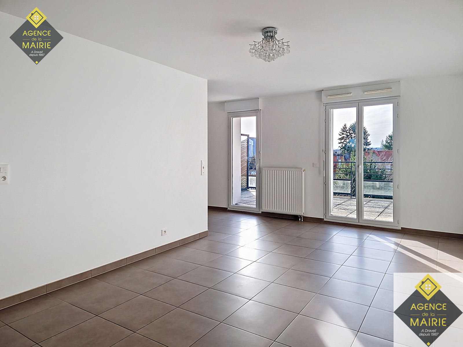 Appt F3 avec Terrasse, au deuxième et dernier étage avec ascenseur et composé d'une entrée avec grand placard de rangement, une belle pièce de vie + cuisine ouverte aménagée, 2 chambres, une salle de bains et un toilette indépendant. Peintures neuves, aucun travaux à prévoir.