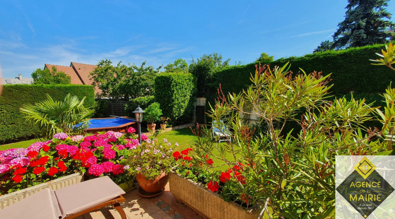 TERRAIN arboré de 580 M², SANS VIS A VIS, arrosage automatique. Pour vos moments de détente, profitez d'une piscine hors sol.