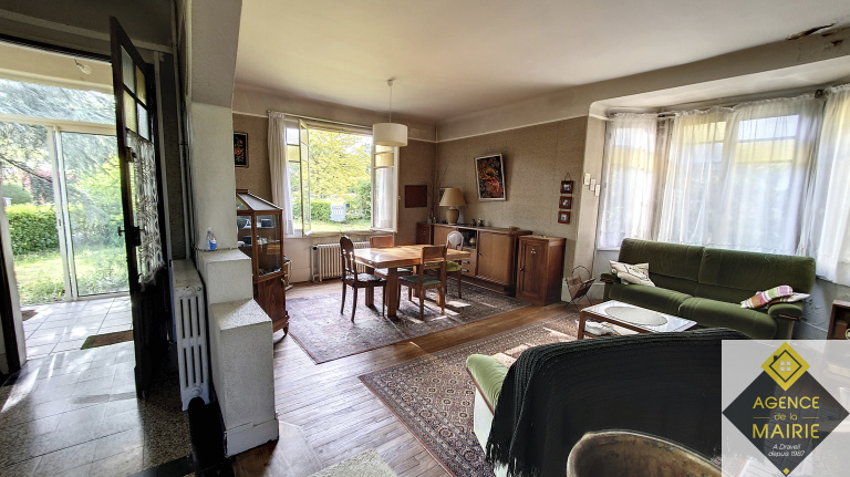 Sur un grand terrain de 1019 m², maison ayant beaucoup de cachet, édifiée sur un sous-sol total. Elle est composée : une entrée donnant sur un séjour, très lumineux grâce au bow-window orienté sud, une petite cuisine. A l'étage, une palier distribue deux chambres dont une avec balcon, une salle d'eau, des toilettes séparées, un espace bureau ou dressing. Un comble aménageable.