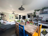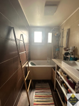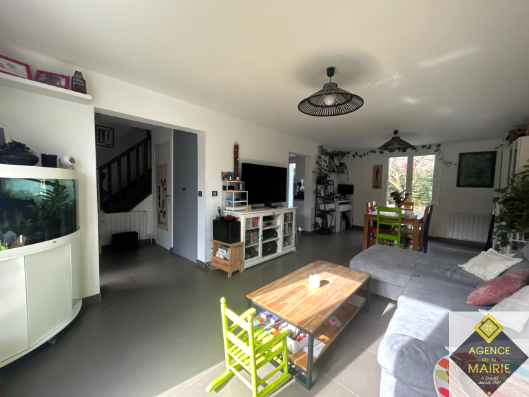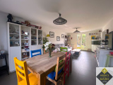 Vous profiterez au rez-de-chaussée, d'une grande entrée, d'un bel espace de vie lumineux et traversant donnant accès à une grande terrasse et son jardin, d'une cuisine séparée equipée ainsi que d'un WC séparé.