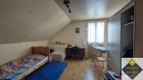 - au premier étage, combles aménagés en 2 chambres + pièce palier avec WC, possibilité salle d'eau.