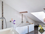 La maison est composée d'un sous-sol total avec caves, d'un RdC avec une entrée, un toilette, une cuisine donnant sur le jardin, un salon. Au 1er étage: un palier et deux chambres, au 2ème étage mansardé: un bureau et une salle de bains avec baignoire, douche et wc.