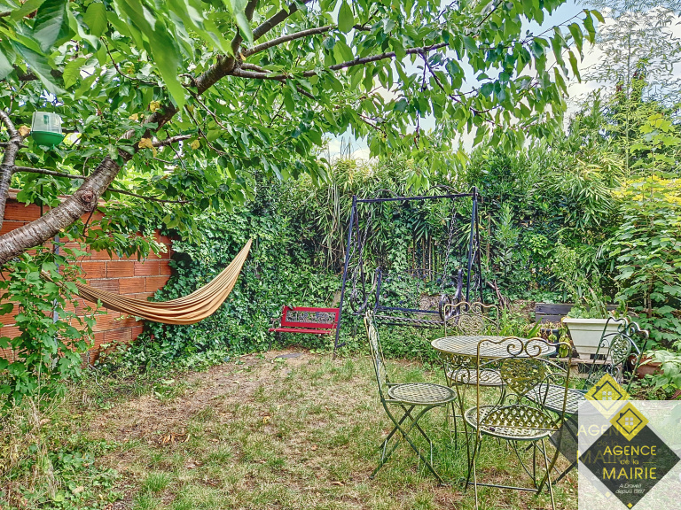 Quartier de la Villa, dans une petite rue très calme à proximité à pied, du Port aux Cerises et de la Gare de Juvisy, maison pleine de charme, mitoyenne d'un côté et disposant d'un charmant jardin de 185m² sans vis à vis.