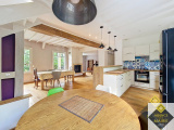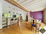 - Au rez-de-chaussée : entrée spacieuse, bel espace de 58 m² environ comprenant une cuisine équipée ouverte sur un séjour double avec cheminée et WC indépendant.