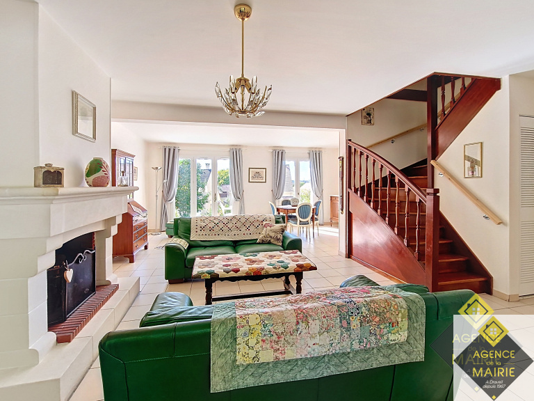 Au rez-de-chaussée: d'un hall d'entrée, un séjour double lumineux et traversant de +40m² avec cheminée, terrasse exposé Sud Ouest, une cuisine dinatoire de 15m² donnant sur le jardin, cellier, buanderie, toilette et garage double.
