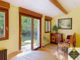 RdC: d'une entrée (carreaux de ciment d'époque), un séjour double avec poële à bois, une chambre avec placard, une cuisine donnant sur une salle à manger et accès direct au jardin. Un garage + un atelier et une grande mezzanine au dessus du tout pouvant être aménagée.