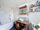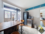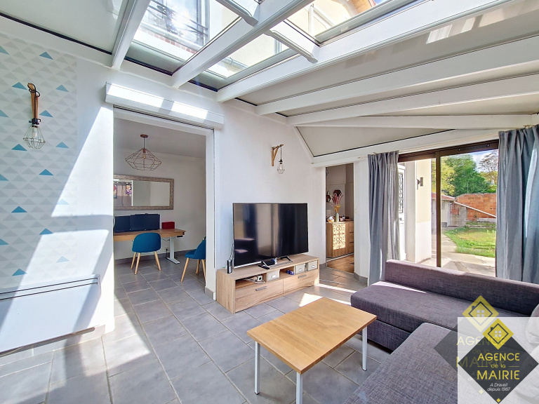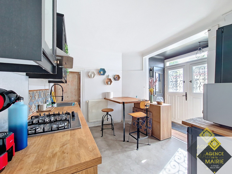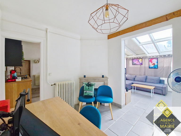 - Au rez-de-chaussée : une entrée donnant sur une cuisine aménagée équipé, une salle à manger avec un accès sur la véranda, au niveau du demi palier on y retrouve une salle de bains avec un WC.