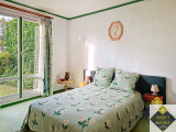 Elle est composé d'une entrée, une chaufferie buanderie, un séjour double avec cheminée insert et accès au jardin, une cuisine, 2 chambres, une salle de bains et un toilette indépendant.