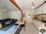 La maison est composée d'une entrée, d'une pièce principale avec cuisine américaine équipée, de deux chambres en enfilade, d'une salle d'eau avec wc et un cellier.