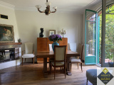 Au rdc, une belle entree dessert une cuisine équipée, les placards sous plafond d'origine ont été restaurés assurant de grands volumes de rangement, wc, un double séjour de 32.70 m² avec cheminées , 2 grandes portes-fenetres cintrées ouvrant sur une grande terrasse (12m²) avec acces direct au jardin.