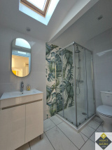 On accède depuis le rdc à la 4éme chambre ( 11m2), qui dispose d'une entrée indépendante par le jardin.Elle jouxte une salle d'eau tout juste rénovée avec douche à l'italienne et toilettes.Dans le prolongement, une pièce de 7m² peut servir de cellier ou de bureau.